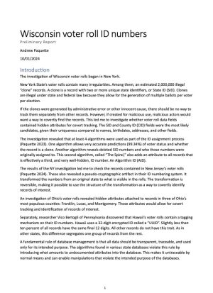 Wisconsin Voter Roll ID Numbers – Preliminary Report